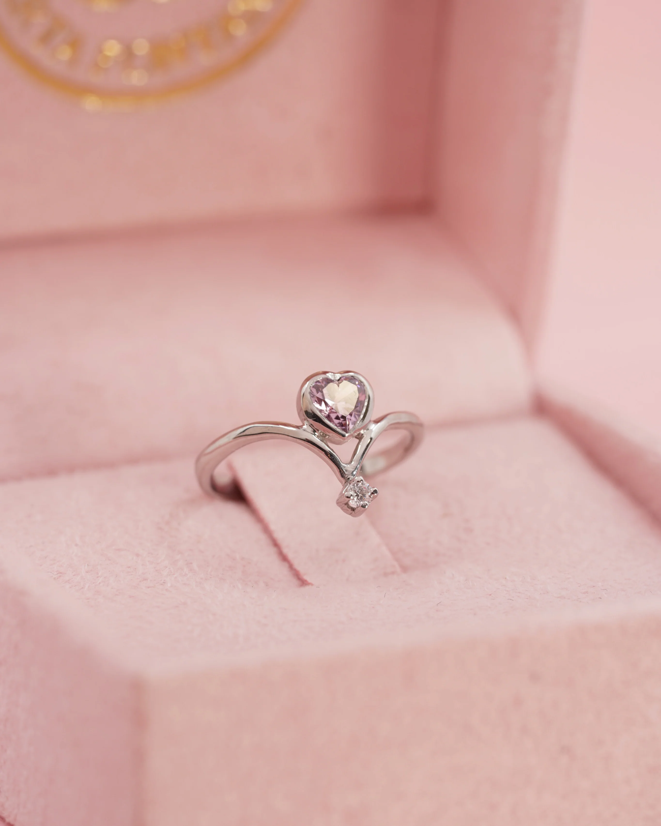 A ring born from eternal love and the power of small gestures. The pink heart and white stone become symbols of tenderness, commitment, and inner strength.
