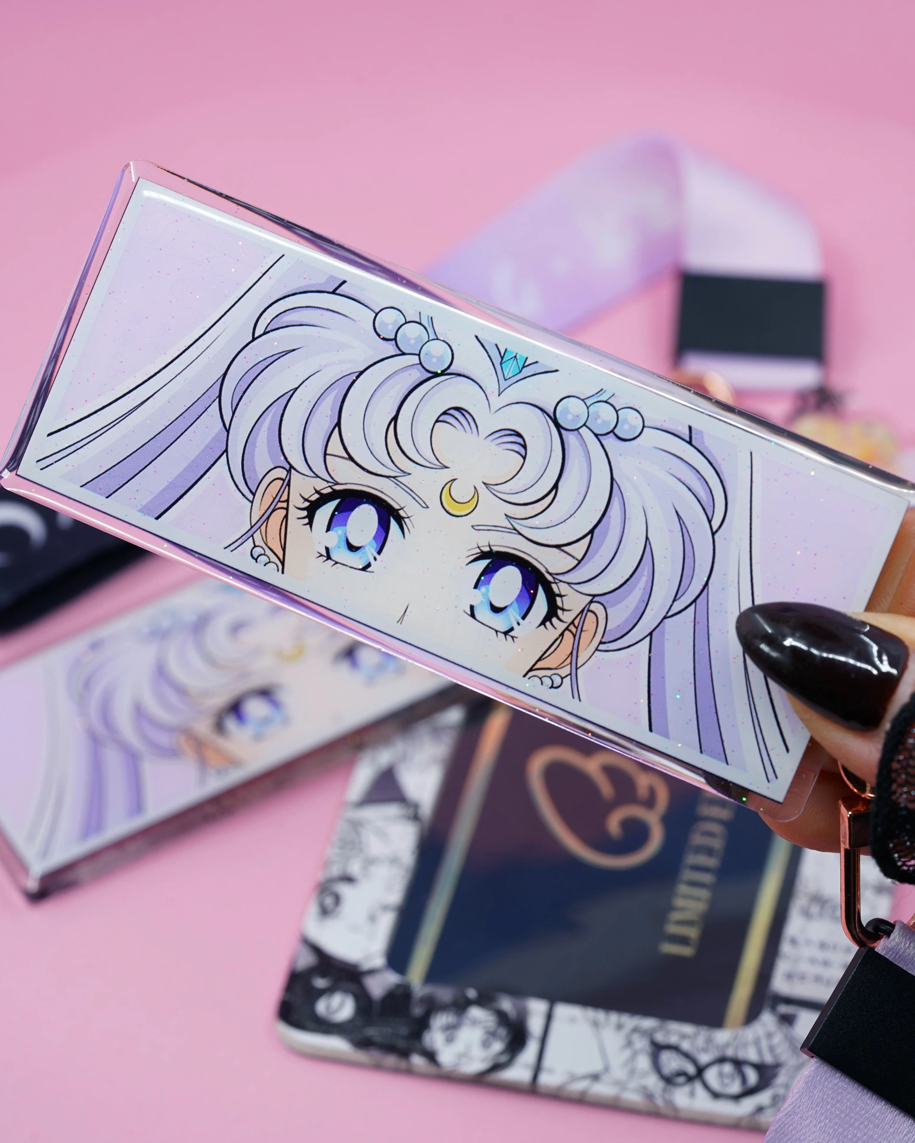 porta tarjeta/ identificación + llavero acrílico de 10 cm, efecto epoxy con purpurina